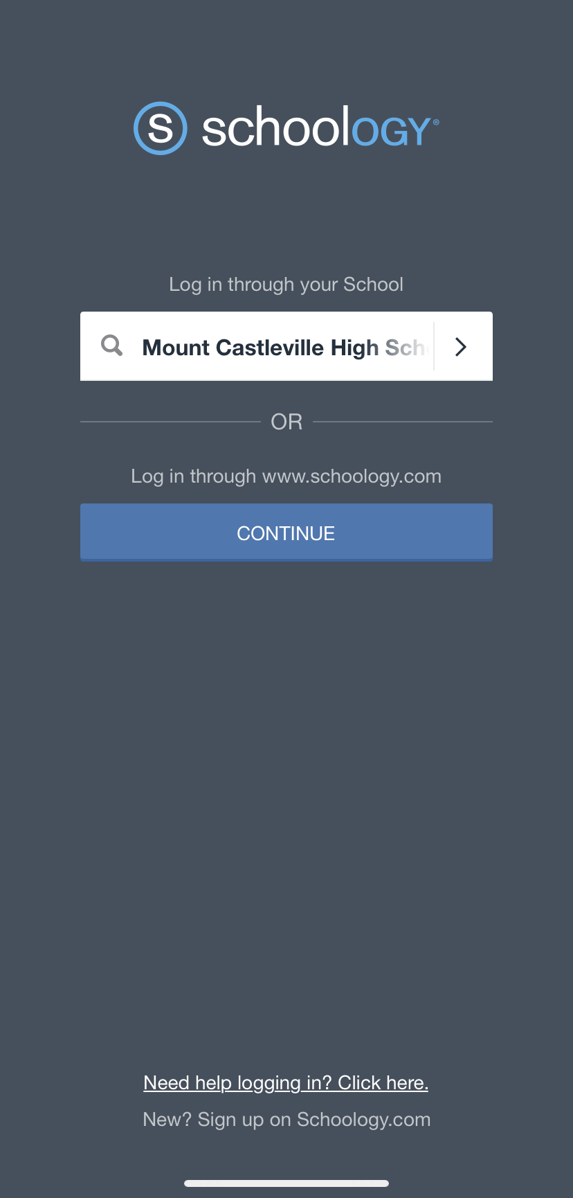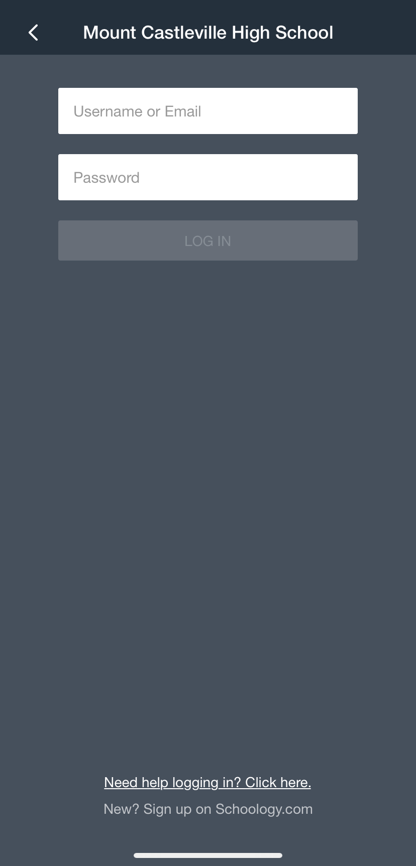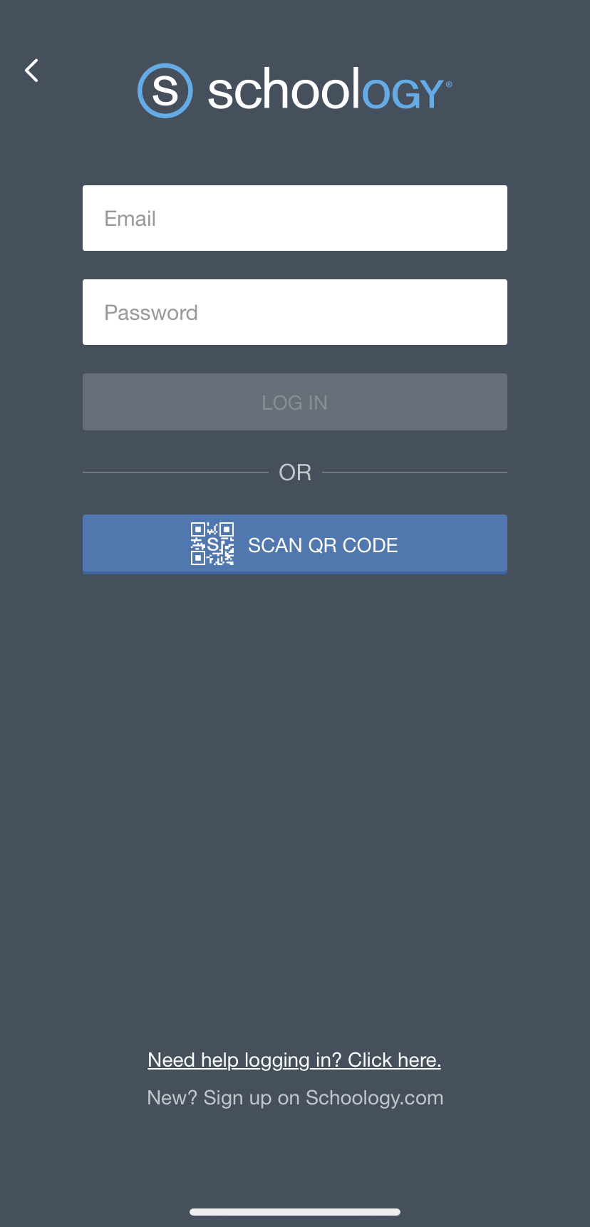 Iniciar sesión en la aplicación móvil de Schoology
