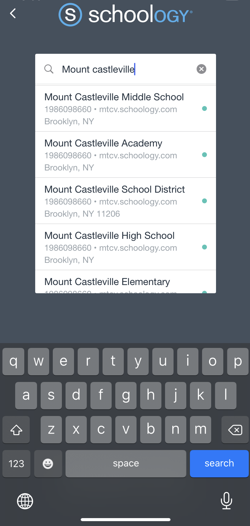 Una vez que cierre la sesión desde la aplicación de Schoology, la próxima vez que un usuario abra la aplicación en el dispositivo móvil aparecerá de forma predeterminada el mismo centro educativo u organización. Esto facilita el inicio de sesión desde su propio dispositivo y resulta útil en caso de que su centro educativo comparta los dispositivos.
