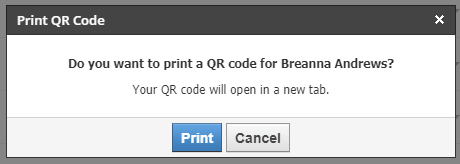 3. Aparecerá una ventana modal para confirmar el nombre del alumno para el cual desea imprimir el código QR. Haga clic en Imprimir para confirmar.