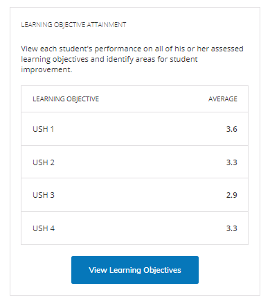 Haga clic en Ver los objetivos de aprendizaje para obtener una vista de tabla completa del informe del Cumplimiento de los objetivos de aprendizaje .