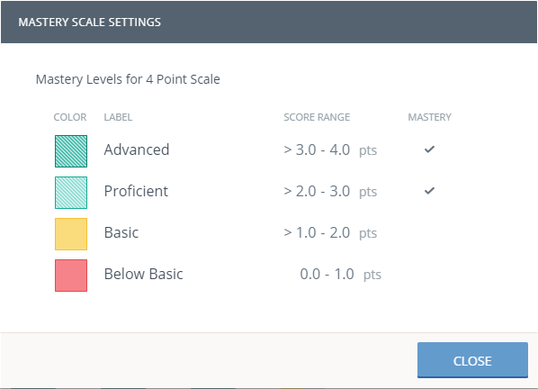 Haga clic en el botón Ver escala en la parte superior derecha para ver la escala de desempeño.