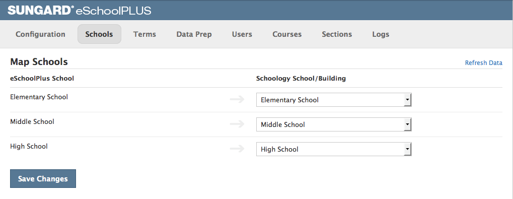 Cuando se instala la aplicación eSchoolPlus para el administrador de la escuela, se utilizará para planificar y personalizar cómo funcionará la integración. Es necesario que esta aplicación se configure para escuelas/distritos antes de que la sincronización de datos pueda comenzar.