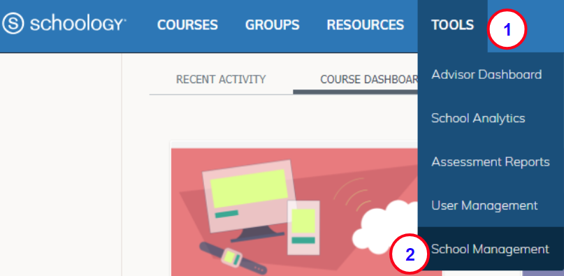 Paso 2: seleccione Administración del centro educativo en el menú desplegable.