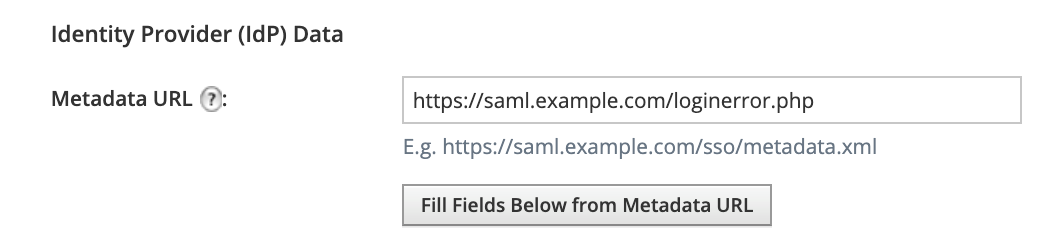 Si utiliza ADFS como el IdP de SAML, deberá ingresar https://[ADFS Server Host]/FederationMetadata/2007-06/FederationMetadata.xml.