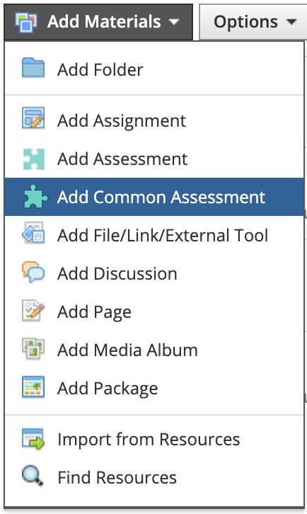 Haga clic en Agregar contenido y seleccione Agregar evaluación estándar. Si no ve la opción Evaluación estándar en su curso, comuníquese con su contacto de soporte.