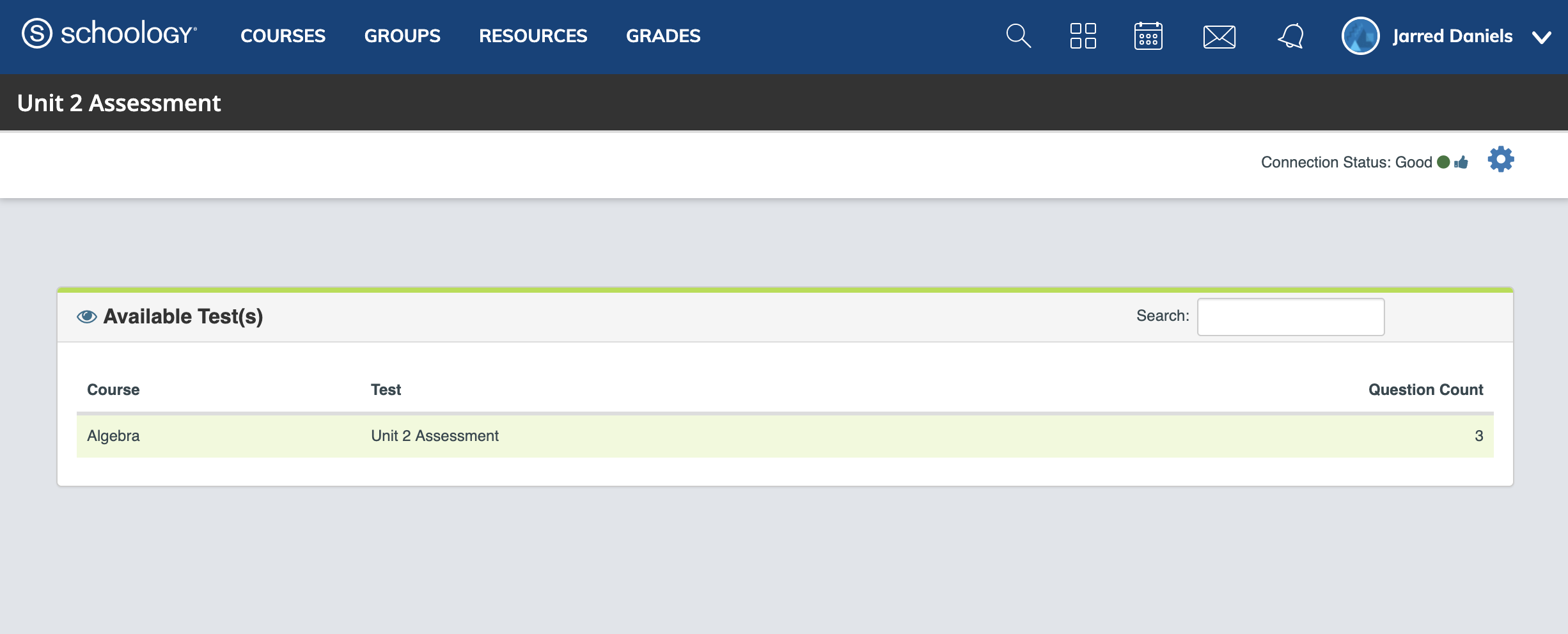 Antes de que los alumnos realicen la evaluación, los instructores deben habilitar la opción Habilitar calificación y seleccionar una categoría de calificación para transferir las puntuaciones a la libreta de calificaciones de Schoology. Los alumnos también deben realizar la evaluación directamente en Schoology en lugar de hacerlo en Asuntos de desempeño.