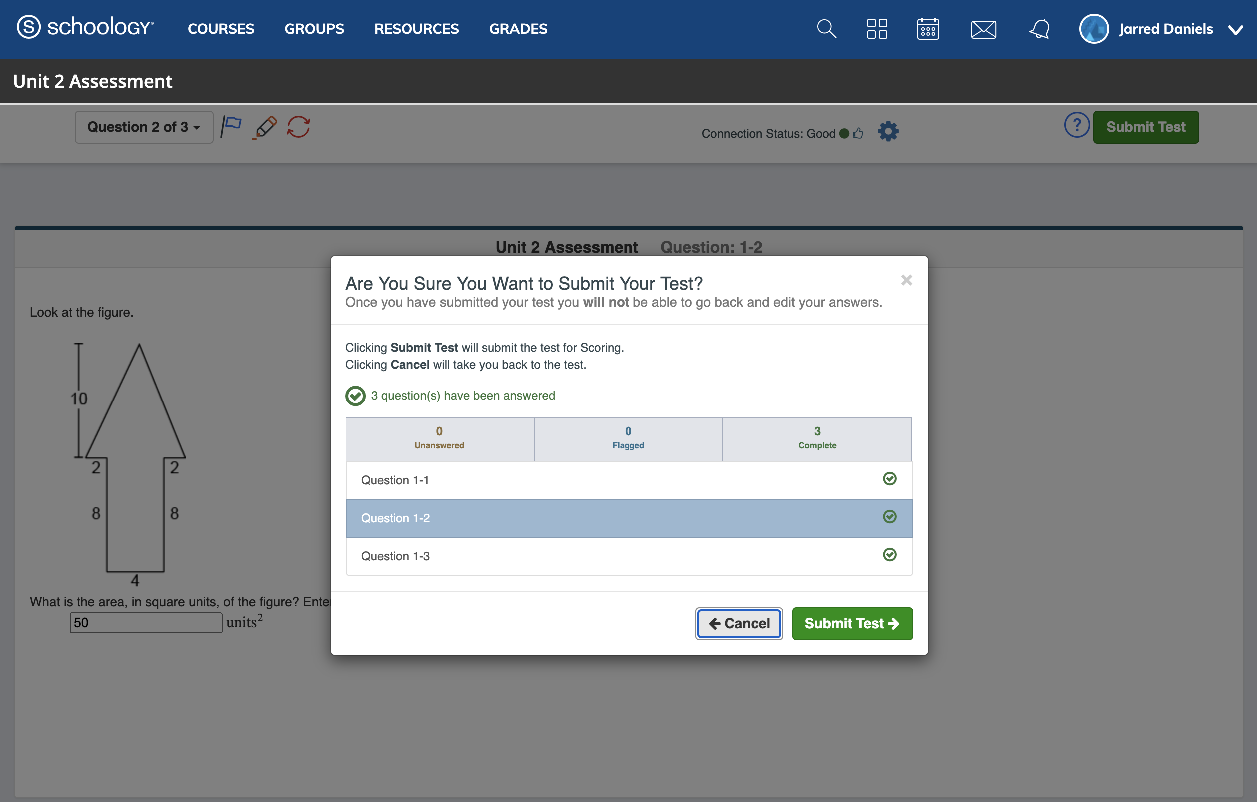Haga clic en Entregar prueba cuando haya completado todas las preguntas.