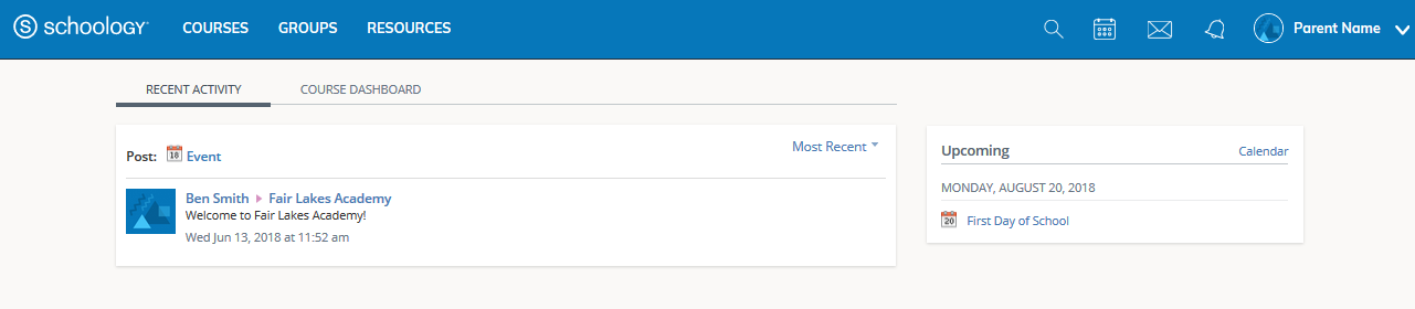 Tener una cuenta de padres en Schoology en realidad es como tener dos cuentas: