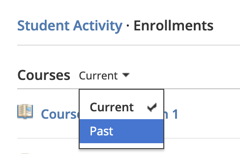 Alterne entre los cursos vigentes y anteriores (archivados) con el filtro Actual / Anterior junto a Cursos: