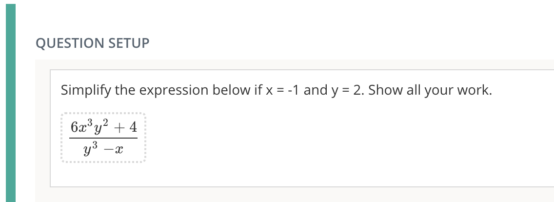 Nota: Las preguntas de respuesta corta matemática no son compatibles con las rúbricas. Para adjuntar una rúbrica a una pregunta, use el tipo de pregunta abierta/de respuesta corta.