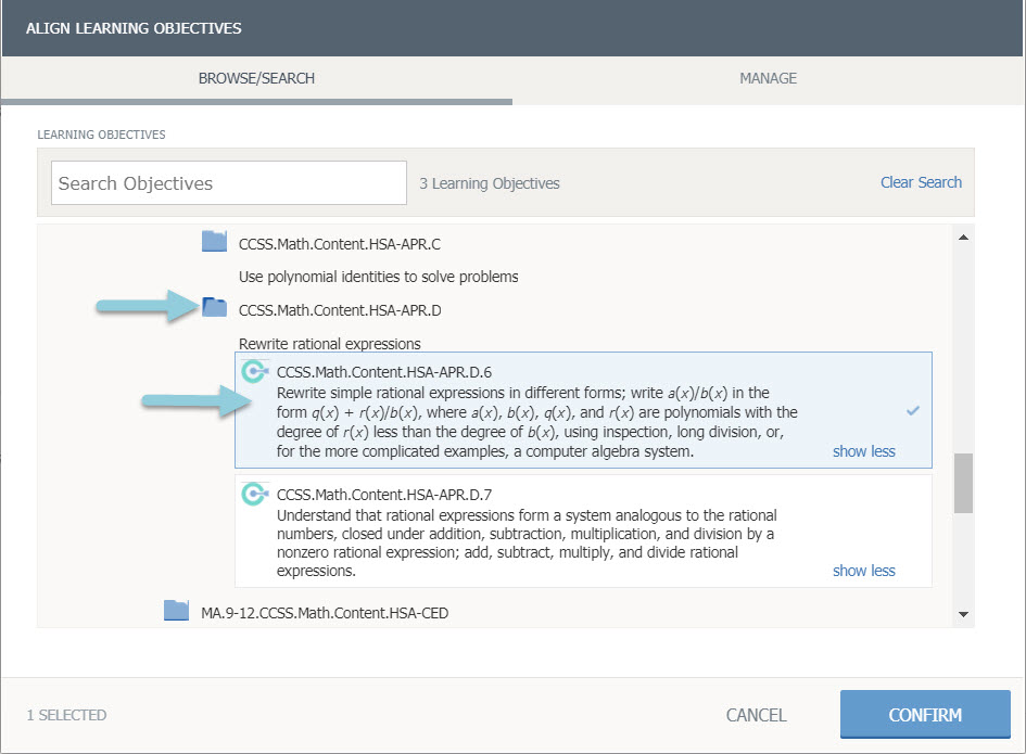 Haga clic en Confirmar para guardar los objetivos de aprendizaje.