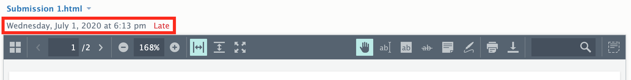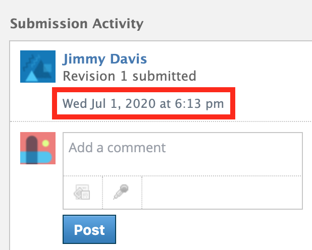 Los instructores pueden ver la fecha y hora de la entrega desde las siguientes áreas: