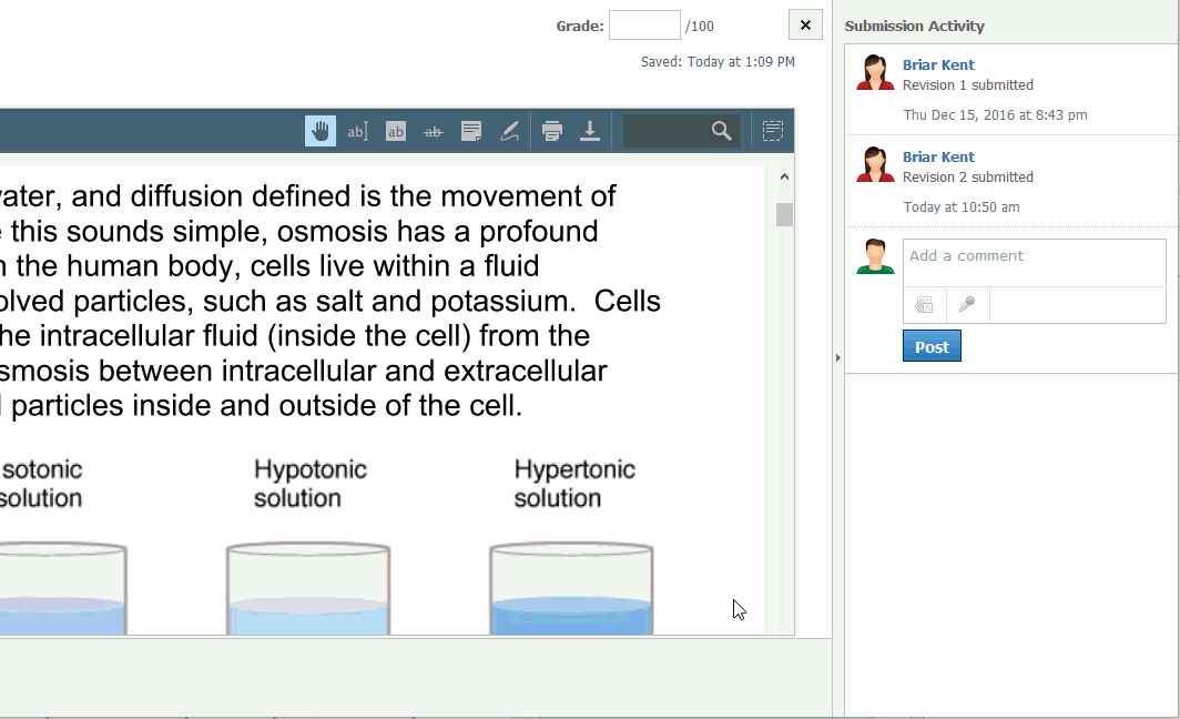 El Visor de documentos permite que los alumnos vean sus documentos, y que los educadores realicen anotaciones en las entregas de las tareas de los alumnos, directamente a través de la cuenta de Schoology.