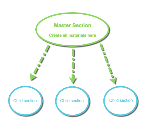 Sección principal: En esta sección, usted crea todos los materiales, que se duplicarán y asignarán automáticamente a los alumnos inscritos en las secciones secundarias. Al vincular las secciones, haga clic en el icono de engranaje situado a la derecha de la sección que desea establecer como sección principal para poder vincular secciones secundarias. La sección principal también incluirá un conjunto de alumnos inscritos en esta.