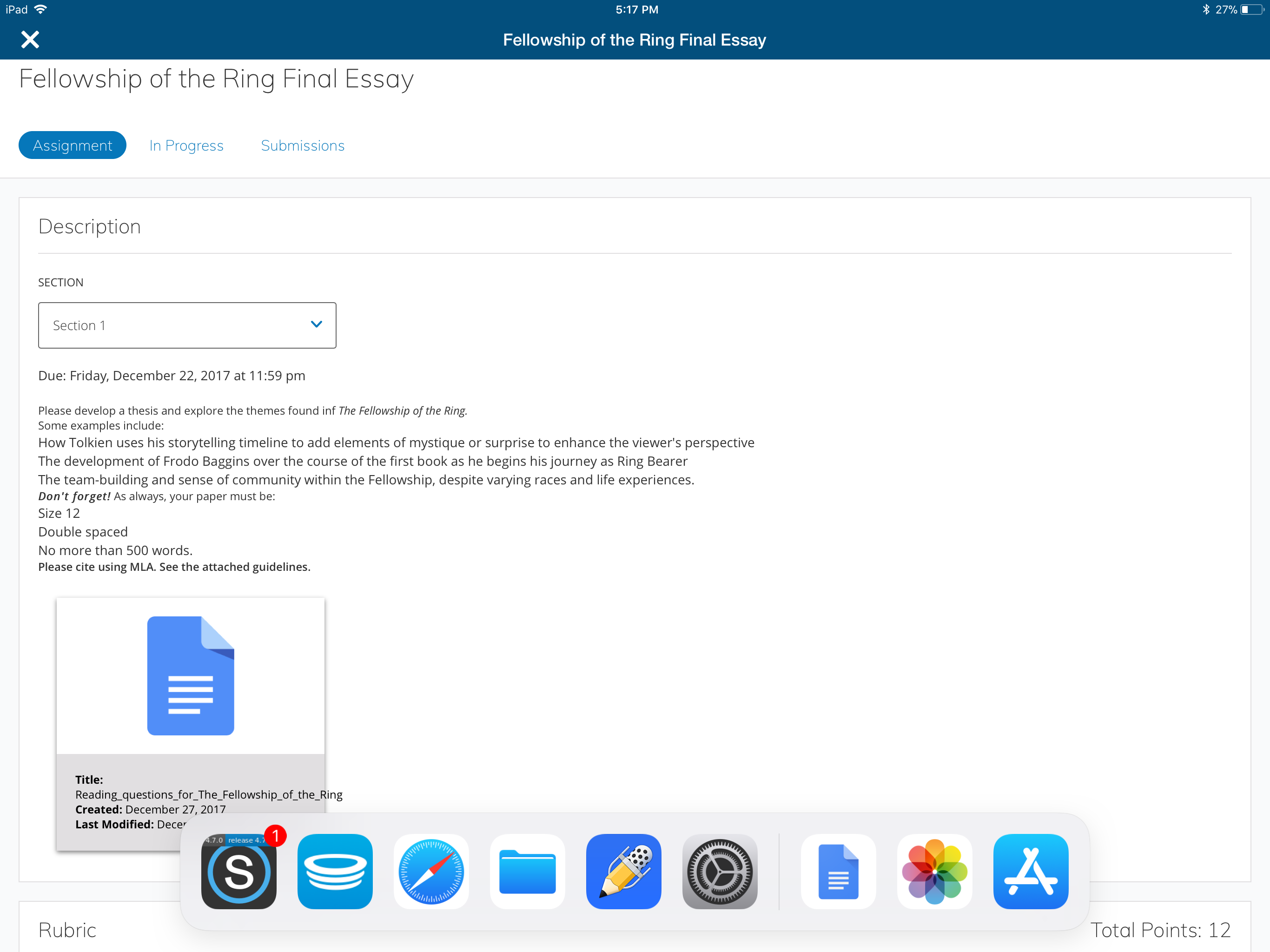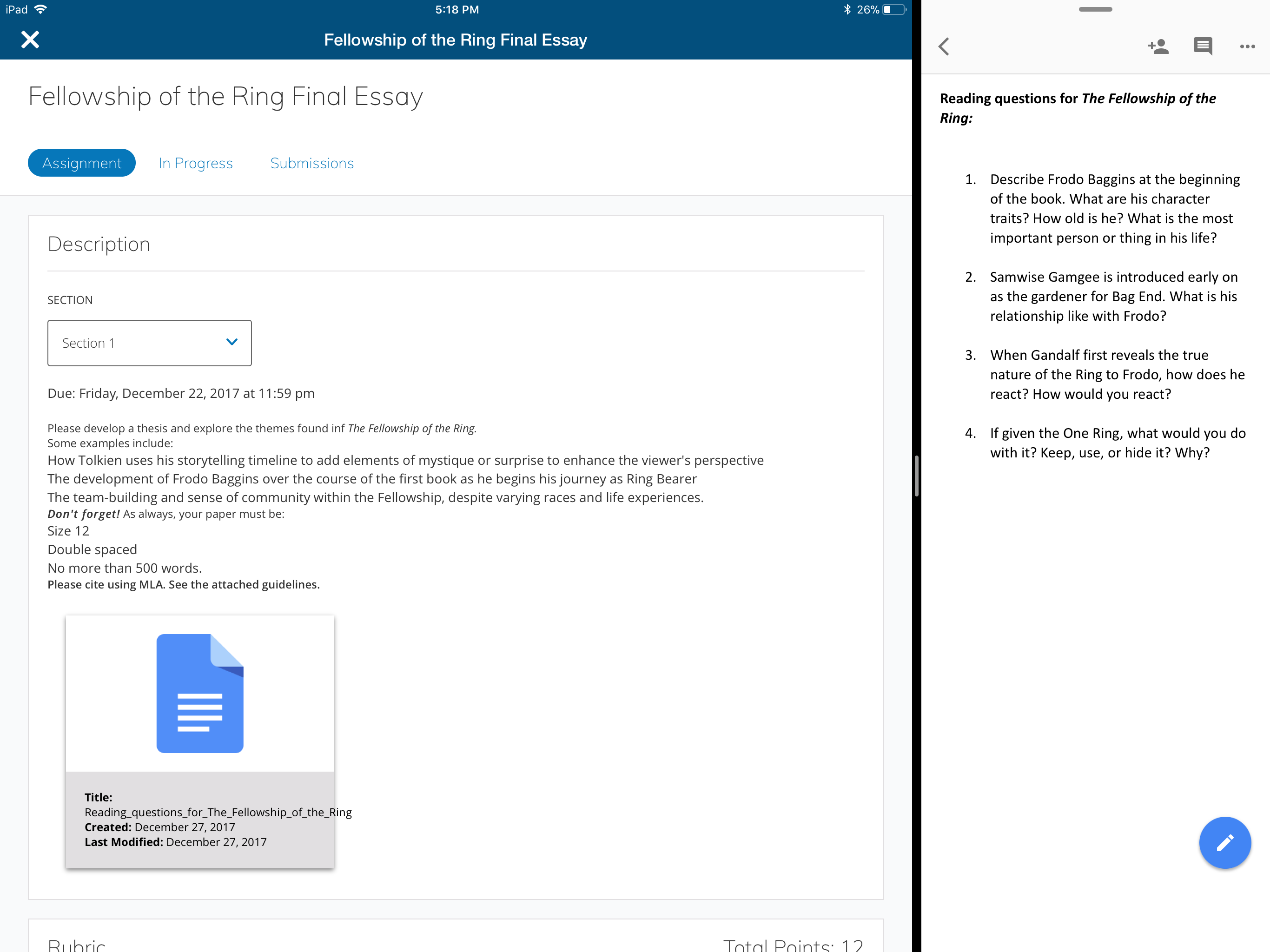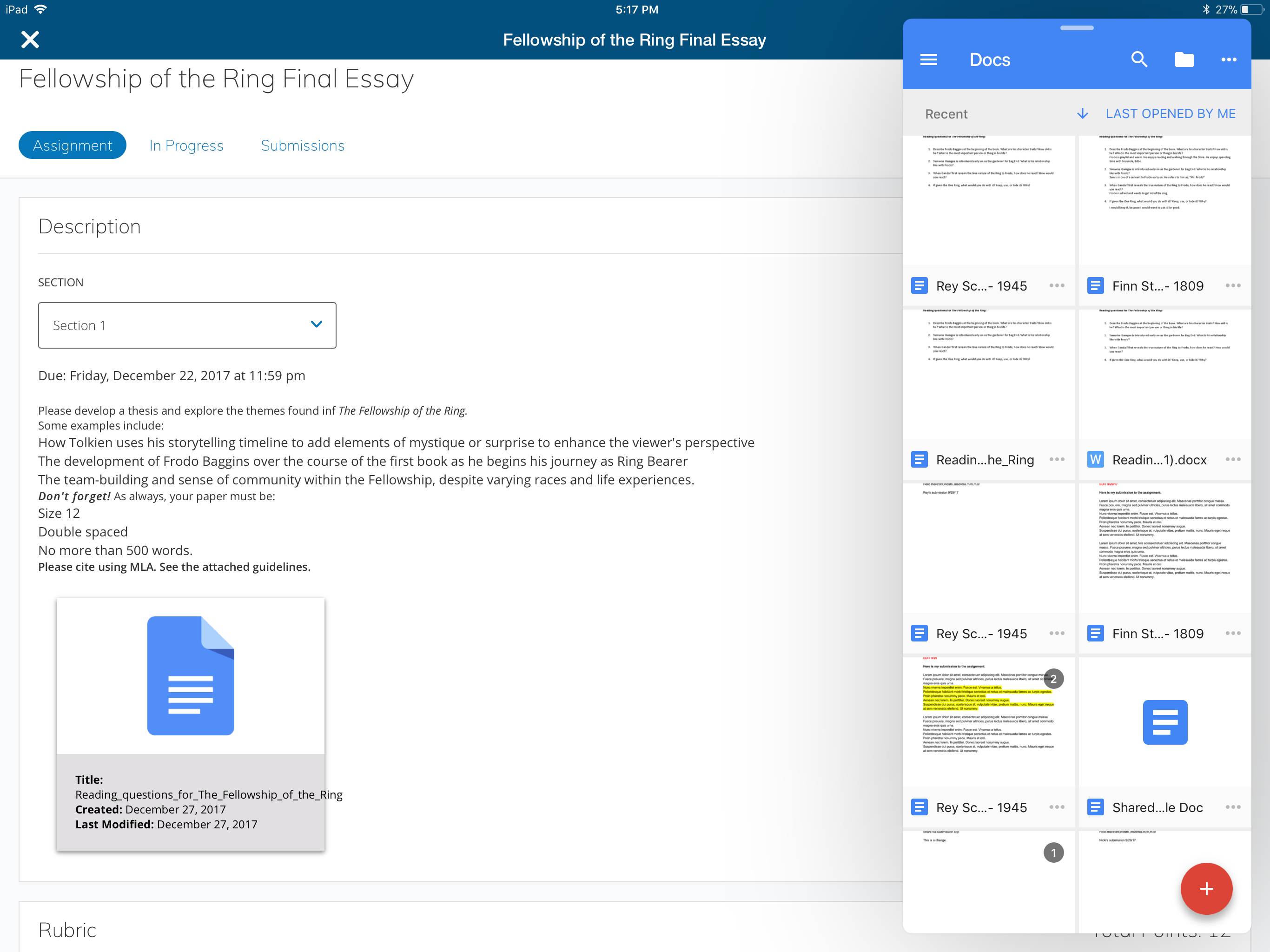 La vista dividida permite a los usuarios de las tabletas iOS realizar varias tareas a la vez y utilizar la aplicación original de Schoology para iOS junto con otras aplicaciones complementarias. Por ejemplo, los instructores pueden leer una entrega de una tarea de Google Drive de un alumno ejecutada desde Schoology y, al mismo tiempo, ingresar la calificación en Schoology mediante la vista dividida que permite usar dos aplicaciones a la vez.